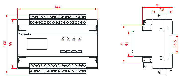 剩余電流監測儀外形與安裝尺寸如下圖所示。(單位:mm)