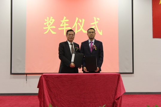 緊隨其后的獎車儀式將大會氣氛推向高潮,總經理周中與安科瑞勞模宗壽松簽署了獎車合約。
