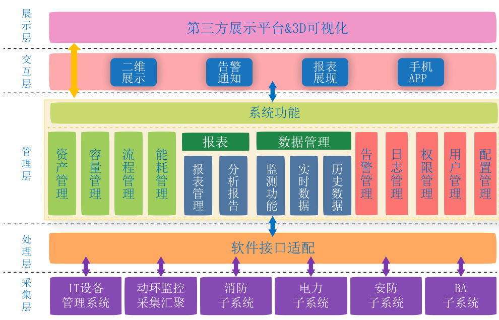整個(gè)系統(tǒng)管理架構(gòu)分為采集層、處理層、管理層、交互展示層四個(gè)層次。