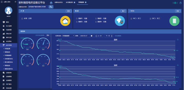 實時監測變電所的運行環境,包括環境溫濕度、水浸、門磁、煙感、線纜溫度等,并可實現視頻監視和錄像回放;
