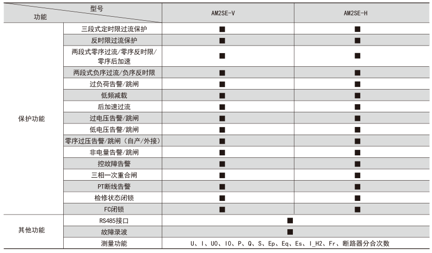 注:√表示具備此功能,■表示可選功能, 空白表示無此功能。