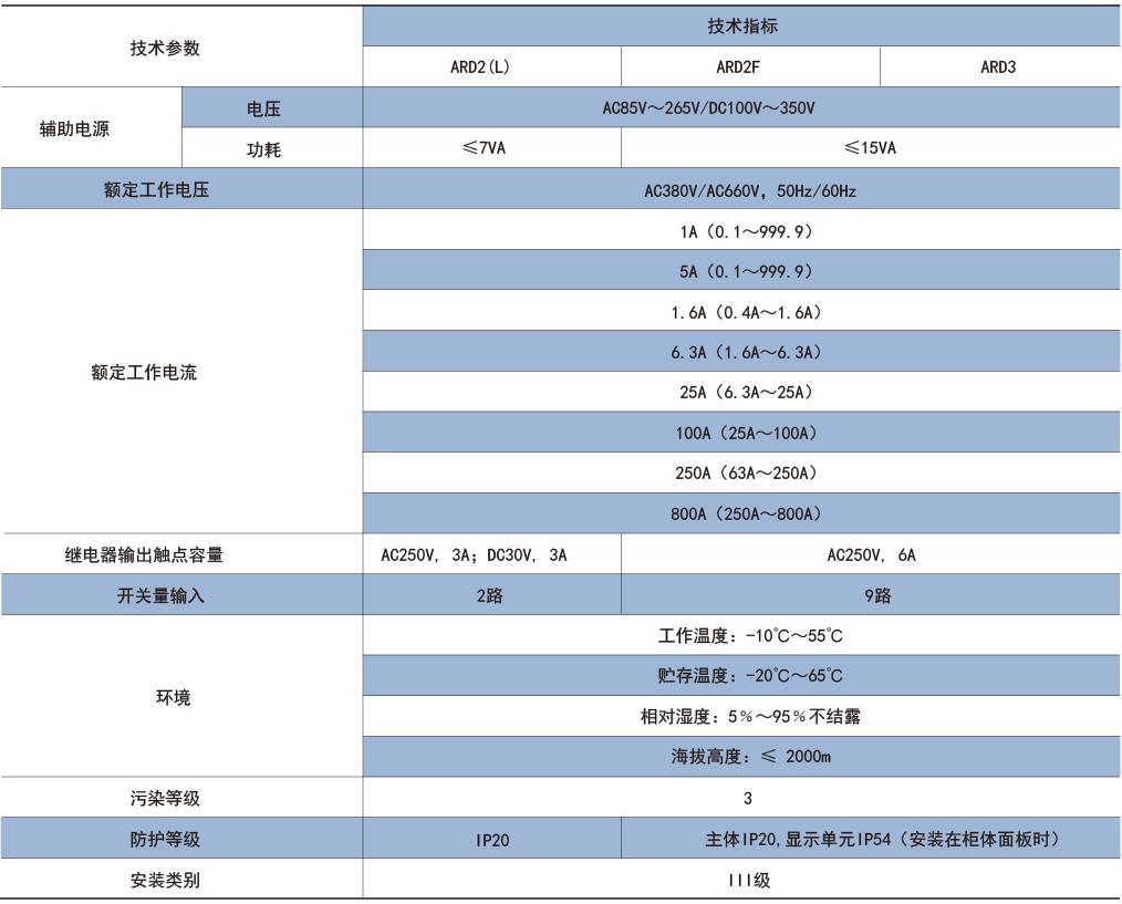 ARD2(L)、ARD2F、ARD3主要技術指標