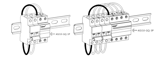 ASJ采用導軌安裝,直接安裝在35mmDIN導軌上,產品安裝接線示意圖如圖所示: