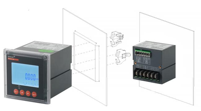 2、把儀表插入配電盤儀表孔中,插入儀表后,用卡扣固定安裝。