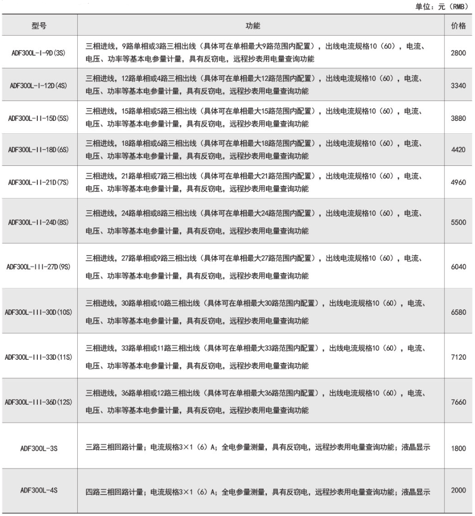 ADF300系列多用戶計量箱是一種電子式智能化多用戶電能表,設計采用一戶一計量方案,具有計量準確度高、戶與戶之間計量互不干擾、集中安裝、集中管理優勢。可以同時計量12戶三相、36戶單相、單/三相回路混合用電狀況。