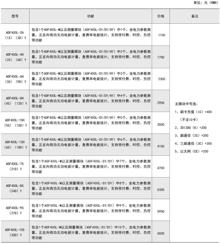 ADF400L系列多用戶電能表,通過模塊組合的方式最大可實現12路三相或36路單相的直接接入測量或12路三相互感器接入測量、直接接入和互感器接入的混合測量方式,該系列電能表因準確度高、集中安裝、集中管理、安裝靈活性高,互不干擾等優勢深受小區、學校、企業等的青睞。該系列儀表支持預付費功功能。