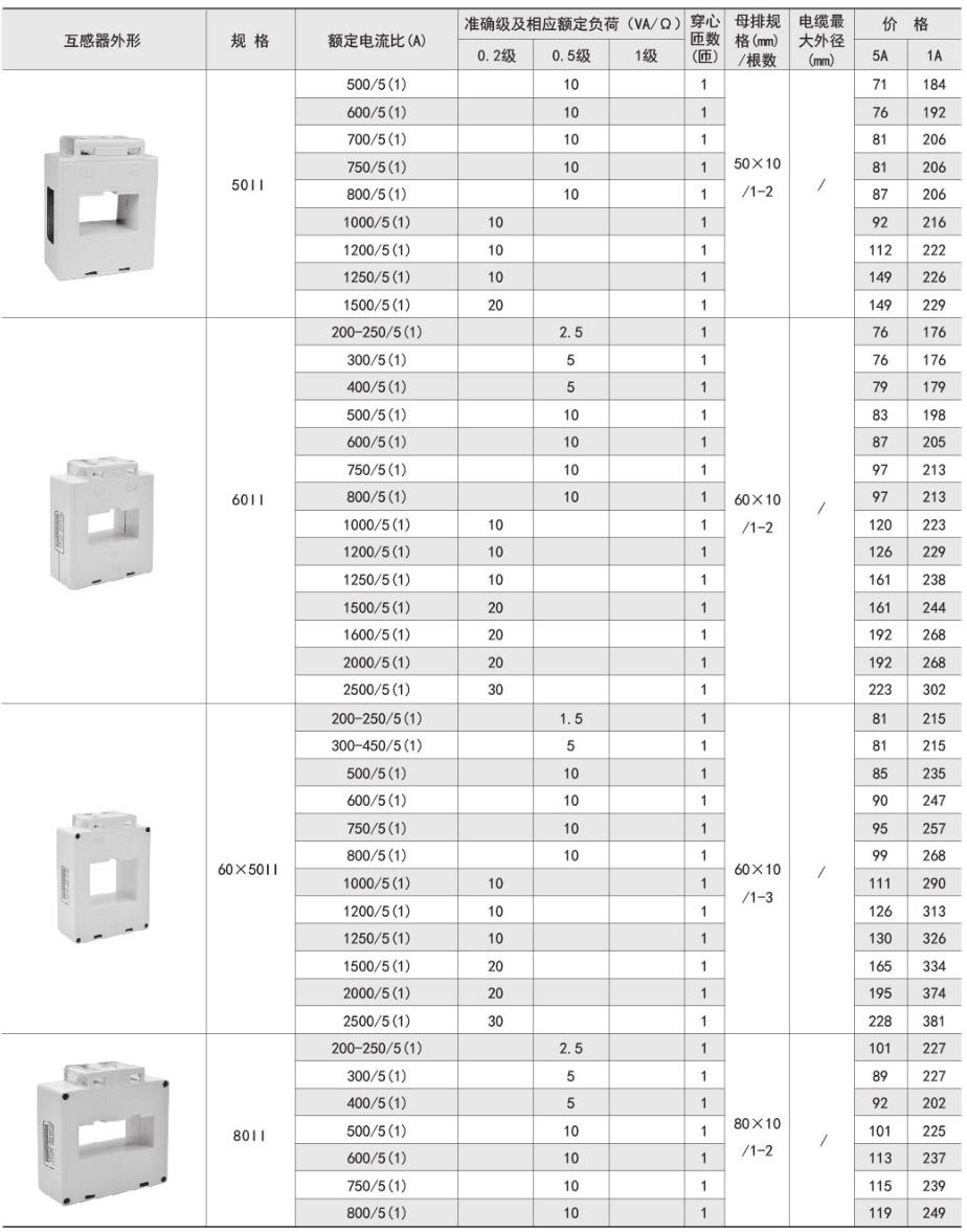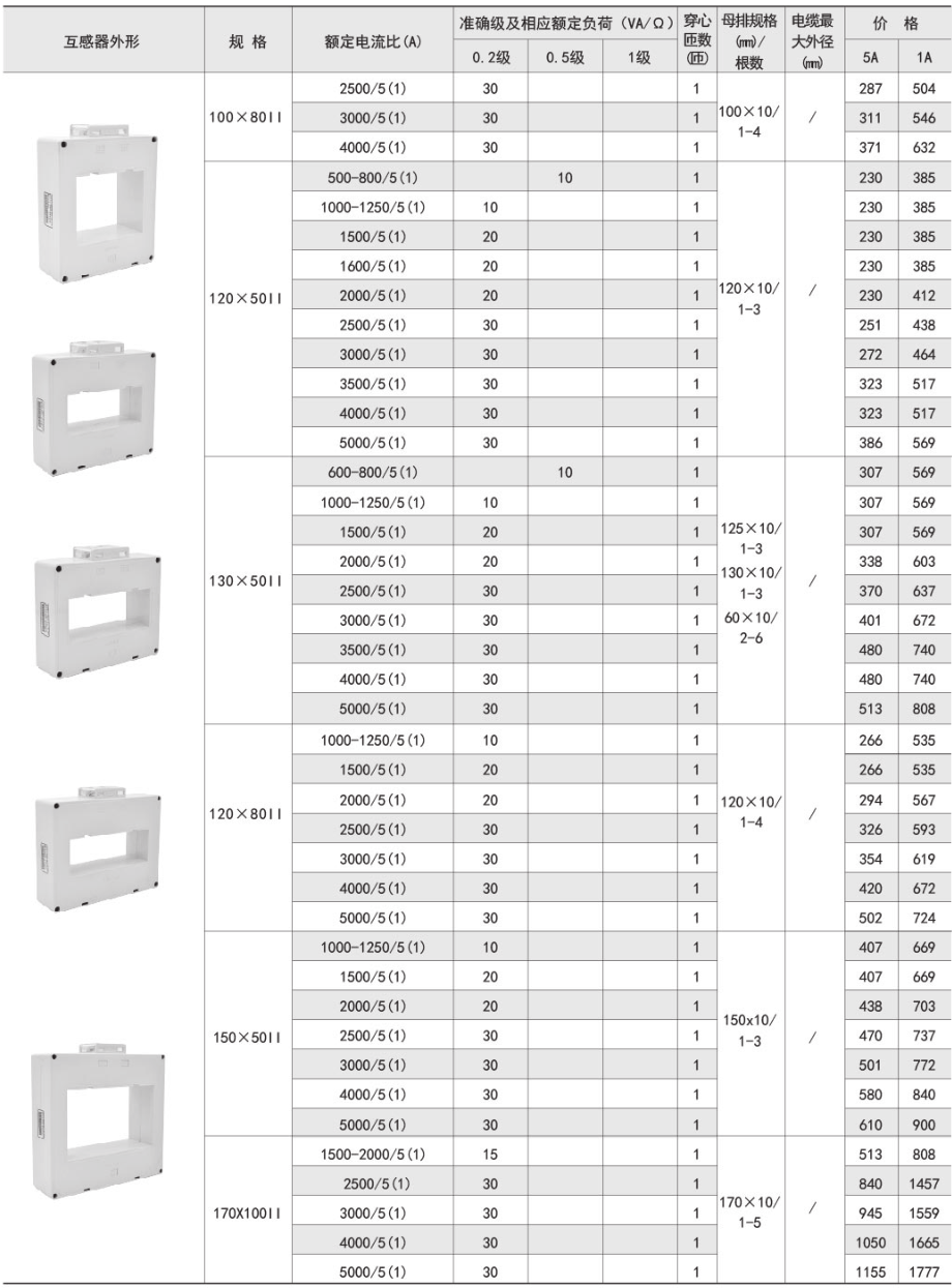 該系列互感器作為交流電流信號采集元件,可與測量儀表配套使用,一次電流測量范圍5-6300A,二次輸出5A或1A,測量范圍為額定值的5-120%。